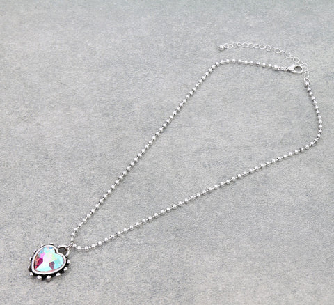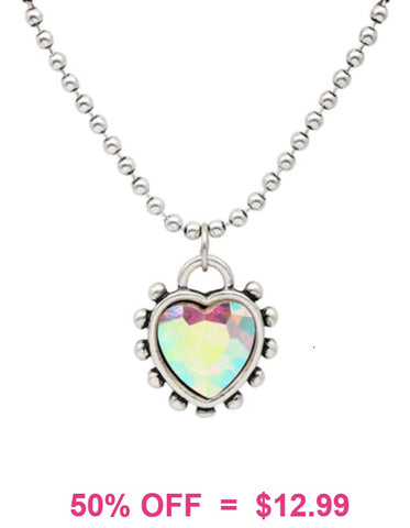 Pink stone heart necklace