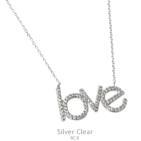 CZ Rhinestone Love Dainty Necklace - 15.5" length; 2" extender - 1" pendant - Gold dipped - Lobster clasp closure - Image may appear larger than the actual size - Image is enlarged to show detail - Lead compliant