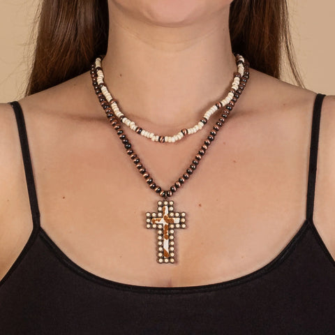 Copper & Cream 2 Strand Necklace with Cross pendant