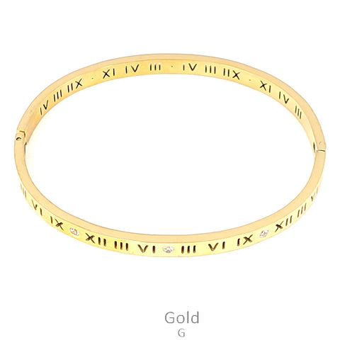 Roman Numbers Stainless Steel Bangle Bracelet - 2.25" diameter; 0.125" width - Snap closure