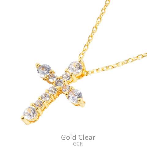 Cubic Zirconia Stone Cross Dainty Necklace - 16" length; 2" extender - 0.75" pendant drop - Gold dipped - Lobster clasp closure - Image may appear larger than the actual size - Image is enlarged to show detail - Lead compliant