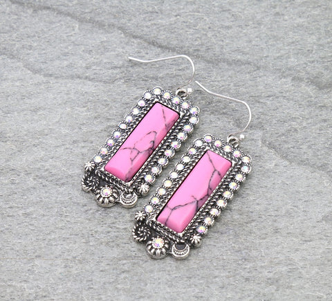 Pink Rectangle stone earrings with bling silver border
