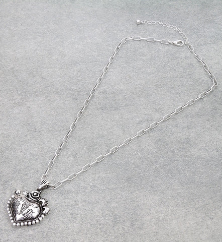 Silver paper clip chain necklace with Western steer / cactus heart pendant
