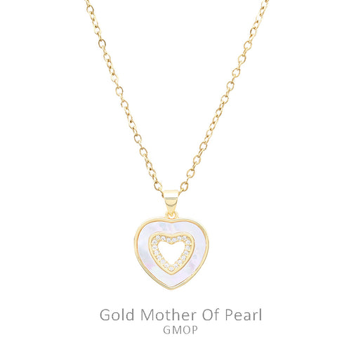 Rhinestone & Mother Of Pearl Heart Pendant Dainty Chain Necklace - 16" length; 3" extender - 1.125" pendant drop - Lobster clasp closure - Lead compliant