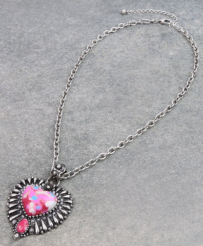 Heart Stone Western Necklace - 18" length; 3" extender - 2.50" pendant drop - Lobster clasp closure - Lead compliant