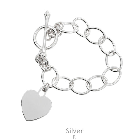 Heart Charm Chain Linked Bracelet - 7" length - 0.875" heart - Gold dipped - Toggle closure - Lead compliant
