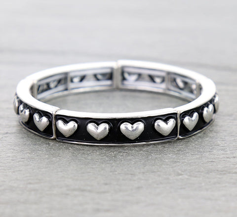 Silver Heart studded stretch bracelet