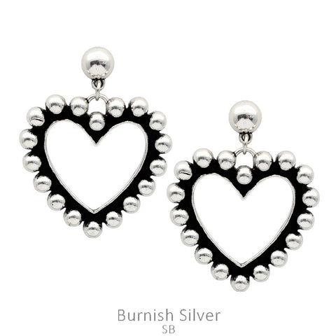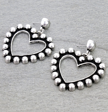 Western Bubble Heart Earring - 2.25" drop - Post back - Lead & nickel compliant