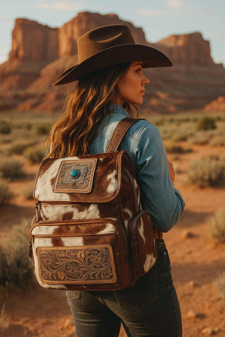 Western Genuine Leather cow hide backpack w/ tooling & concho