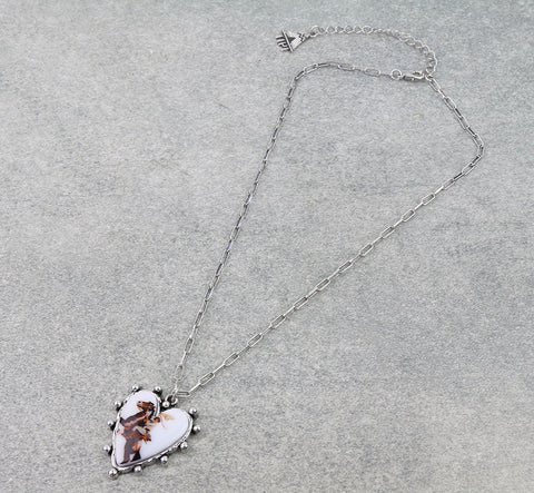 White Cowgirl heart silver necklace