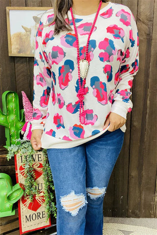 Pink & Blue leopard print ivory sweatshirt