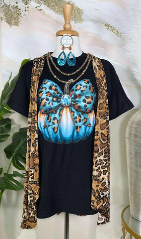 Turquoise Leopard pumpkin tee - misses