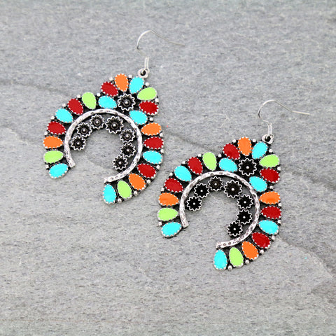 Multi color Squash Blossom Style Inlayed Earrings