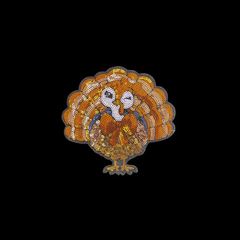 Sequin turkey patch with cute bow detail & winky face on turkey,