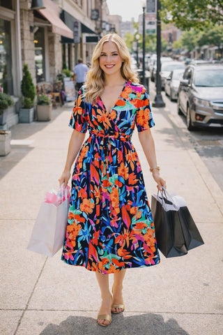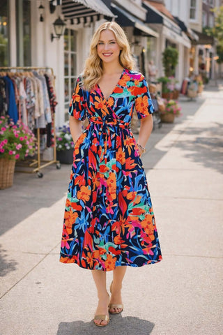 Black, Blue, Orange Floral Dress