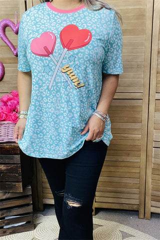 Turquoise & WHITE LEOPARD PRINT , GRAPHIC TEE