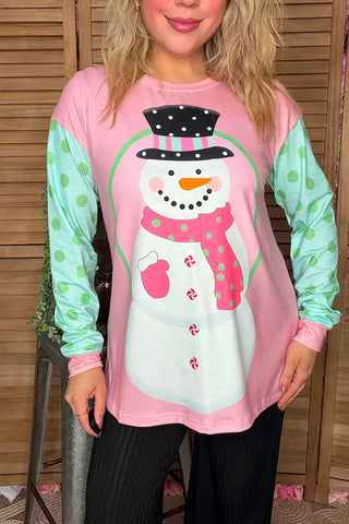 Pink & Mint Snowman long sleeve top