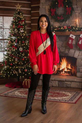 Red top with gold sequins