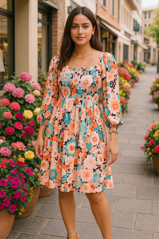 S, M, 2X, 3X Floral Smocked Baby Doll Dress