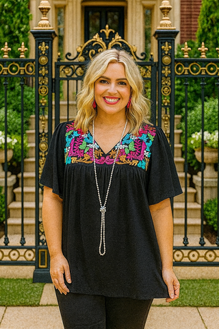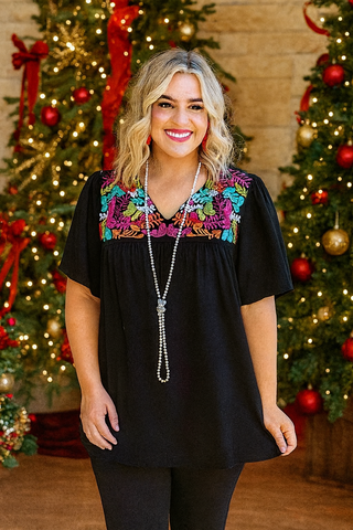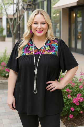 Black Blouse With Colorful Embroidery